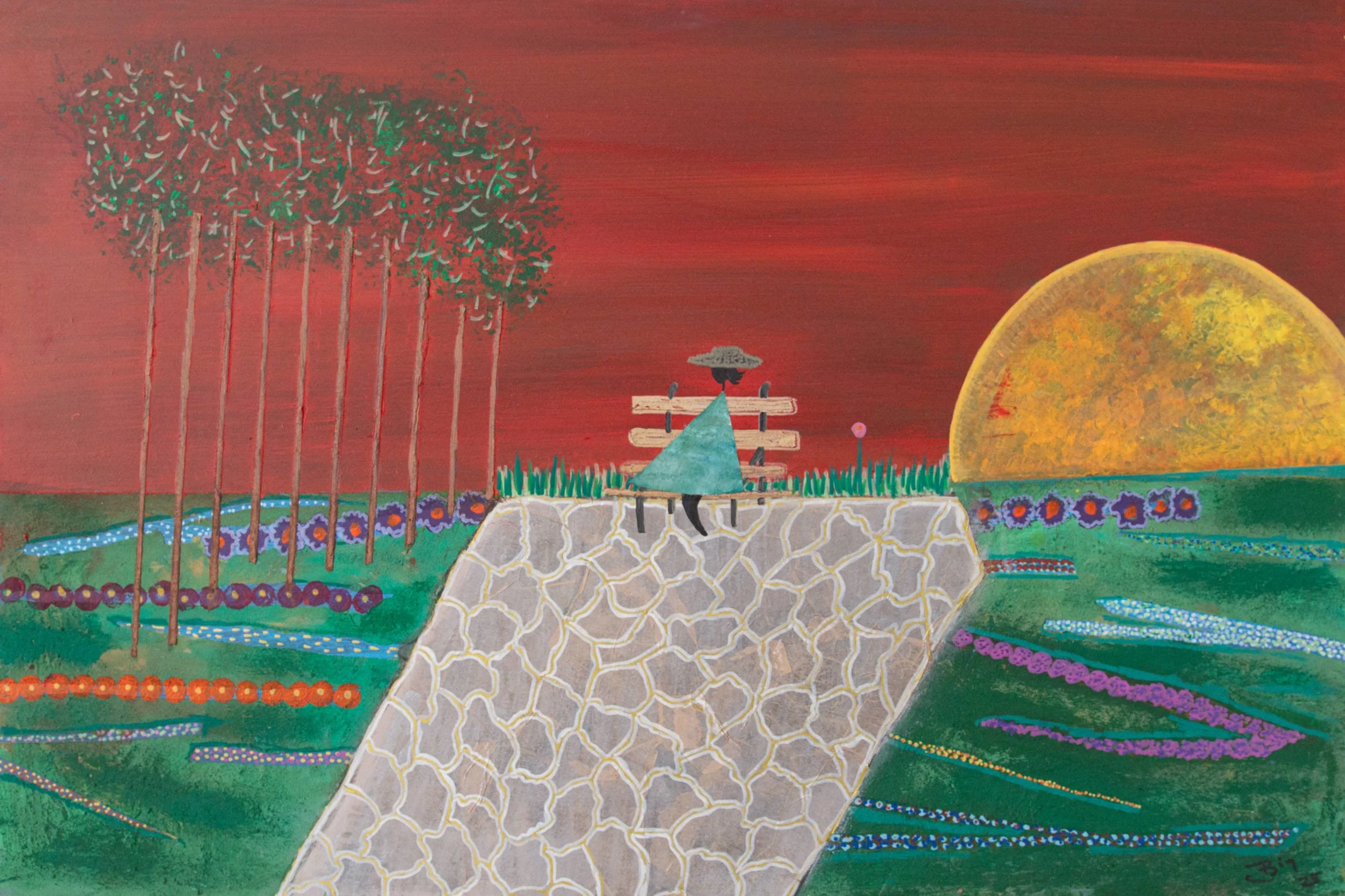 The artworks elicit a safe, warm and comfortable place, almost childlike. A place where contemplation and serenity are the sensations that command my small orchestra of colors.